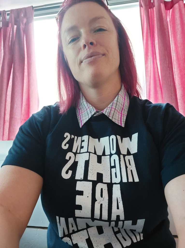 Stolze Eigentümerin eines Original T-Shirts der TraffickingHUB Kampagne