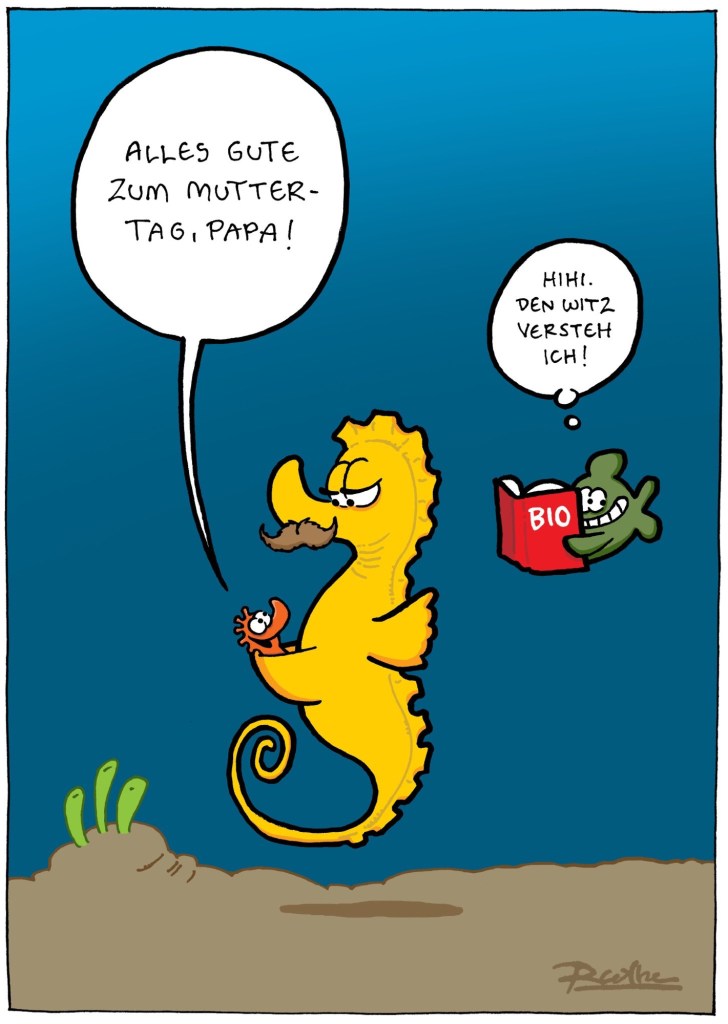 Social Media Fundus – Ralph Ruthe Gelbes Seepferd: Alles Gute zum Muttertag, Papa! Grüner Fisch: Hihi. Den Witz versteh ich.
