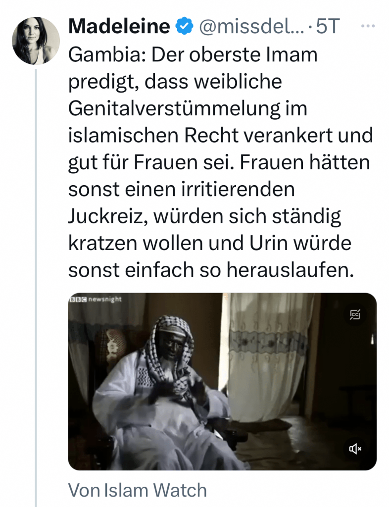 Ein afrikanischer Staat – Gambia – hat vor Kurzem das Verbot der Intim-Beschneidung bzw. Genitalverstümmelung der Frau wieder aufgehoben oder wieder eingeführt.