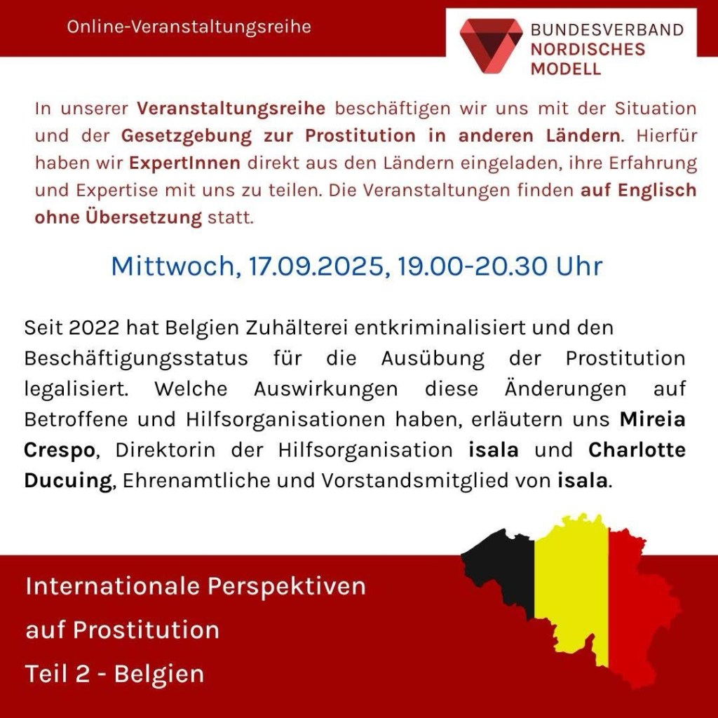 Die Online-Veranstaltungsreihe vom Bundesverband Nordisches Modell mit den Ländern Ukraine, Belgien, Frankreich und Schweden