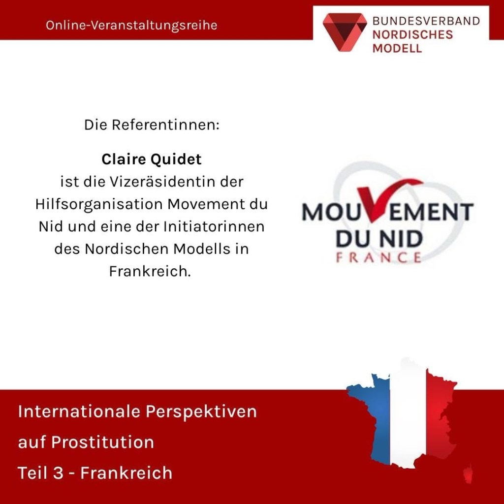 Frau Quidet ist die Vizepräsidentin der Hilfsorganisation Movement du Nid los und eine der Initiatorinnen des Nordischen Modells in Frankreich